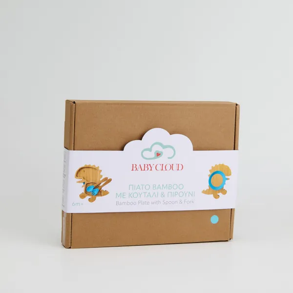 Πιάτο από 100% μπαμπού με βεντούζα σιλικόνης και πιρούνι-κουτάλι.