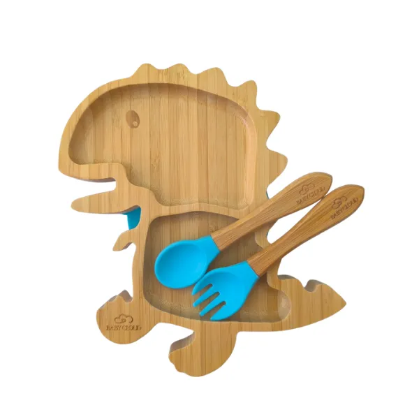 Πιάτο Φαγητού Bamboo με κουτάλι/πιρούνι – Δεινόσαυρος Μπλε