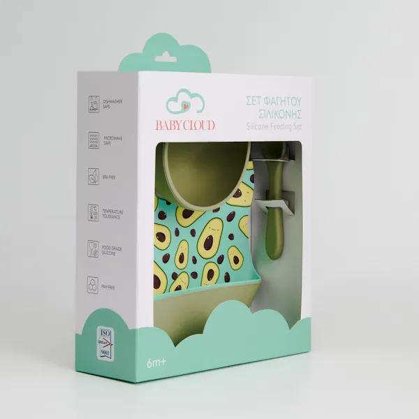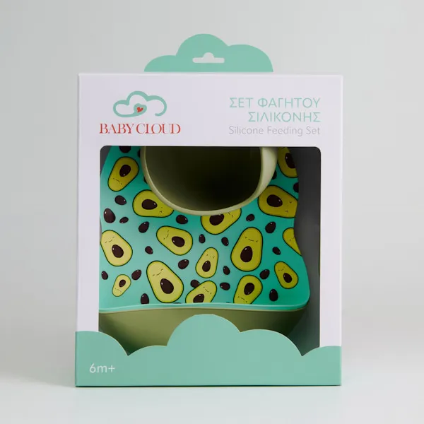 Σετ Φαγητού BABY CLOUD κατασκευασμένο από 100% σιλικόνη τροφίμων, χωρίς BPA, κατάλληλο για το μωράκι σας.