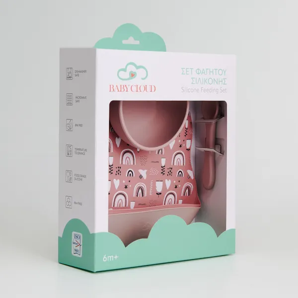 Σετ Φαγητού BABY CLOUD κατασκευασμένο από 100% σιλικόνη τροφίμων, χωρίς BPA, κατάλληλο για το μωράκι σας.