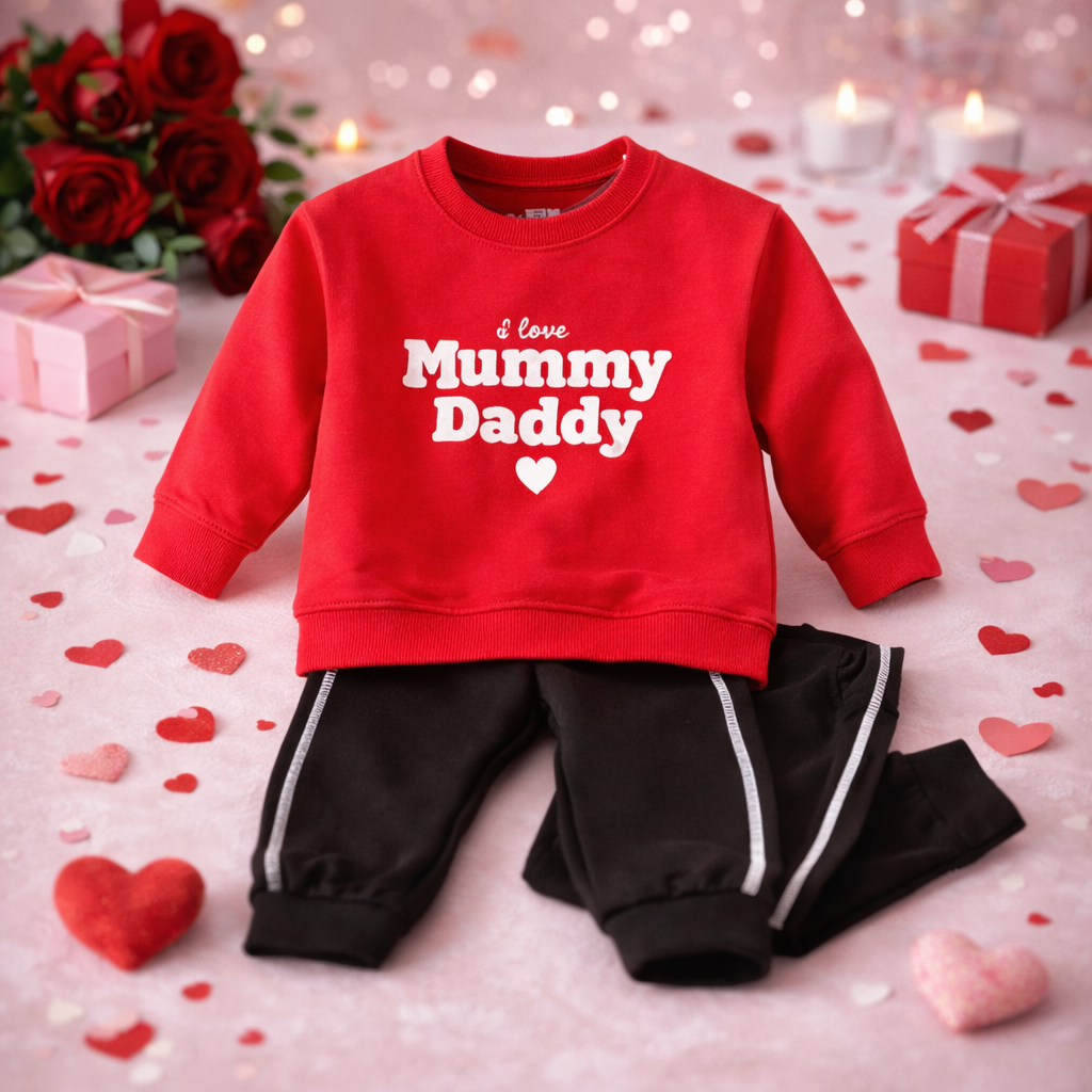 Κόκκινο μακρυμάνικο μπλουζάκι με χαριτωμένο μήνυμα “Love Mummy & Daddy”, φτιαγμένο από απαλό ύφασμα που αγαπούν τα μωρά.